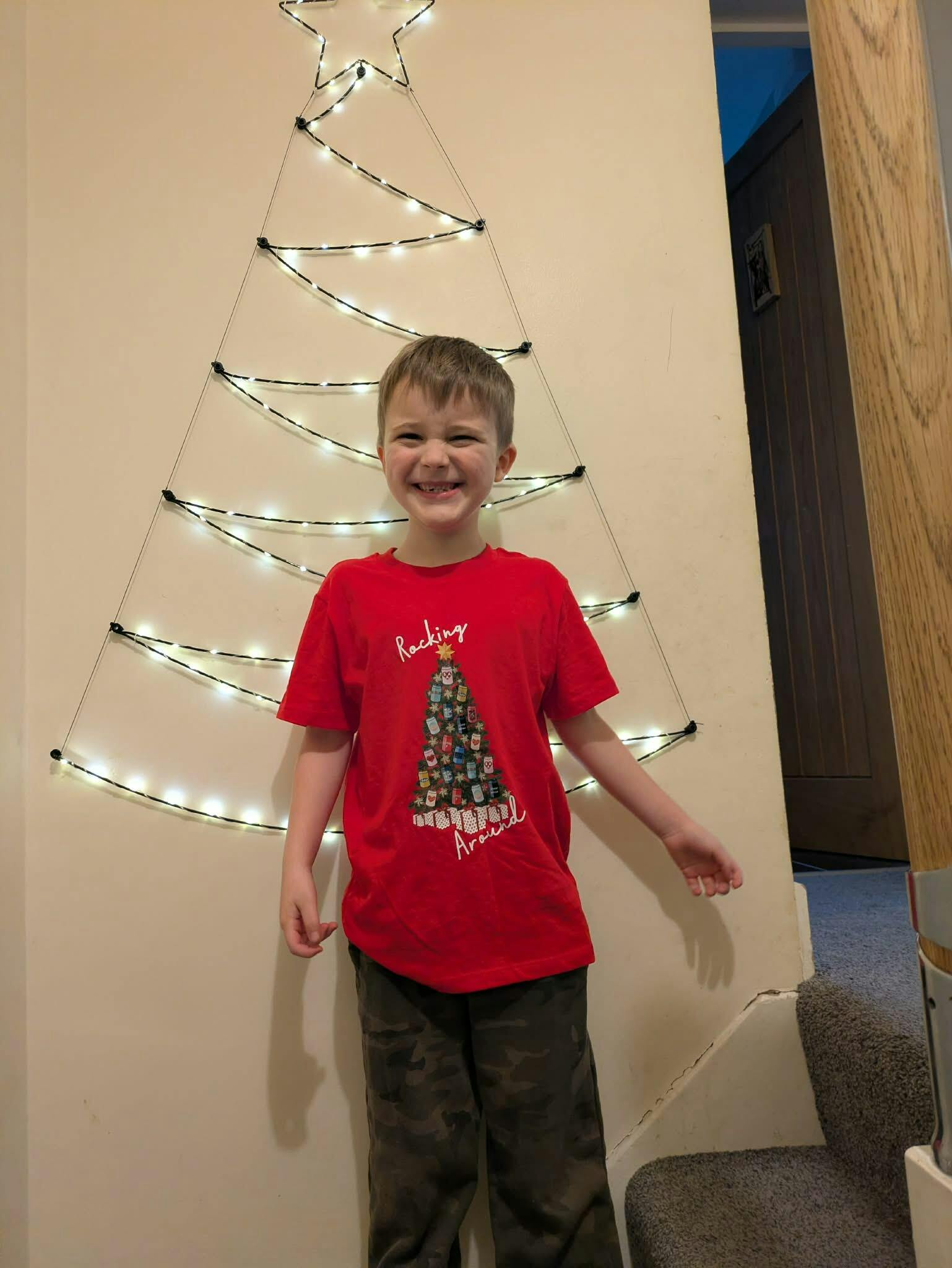 The Cans For Change Christmas Kids T-Shirt features a colourful Christmas tree decorated with our signature cans as baubles, each one representing one of our designs, and the words “Rockin’ Around.”