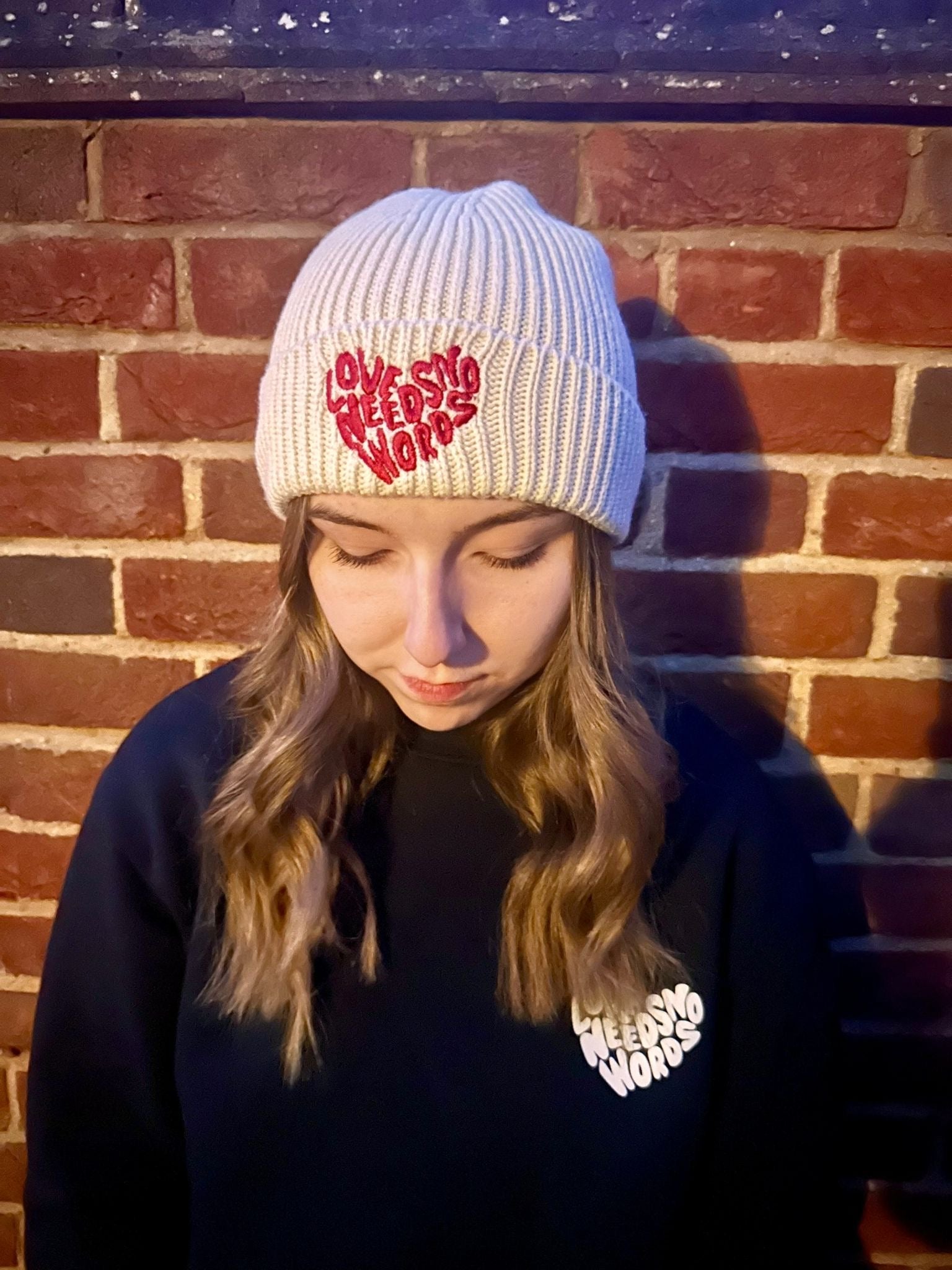 Join the Movement: Become part of a community that believes in the transformative power of love. Order the "Love Needs No Words" Beanie and let your winter fashion make a meaningful impact. 💙❄️✨