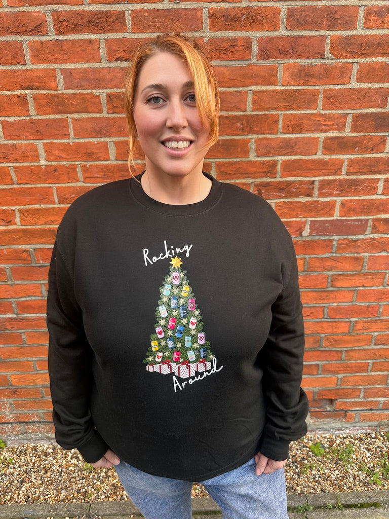 With the words “Rockin’ Around” completing the design, this sweatshirt is full of festive energy and purpose.