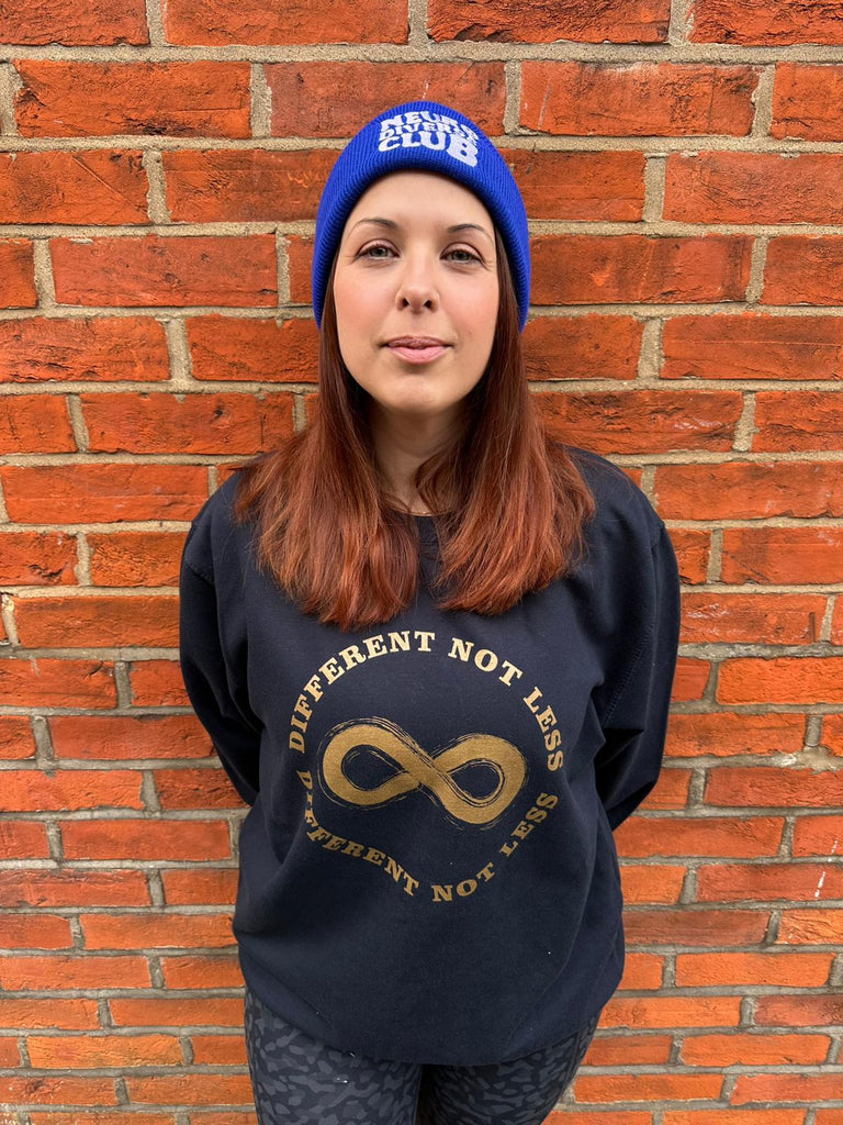 🌈 Inclusive Design: Our sweatshirts feature a gold infinity design representing autism, radiating inclusivity and acceptance. With every wear, you're making a statement that being autistic is different not less.